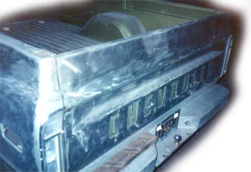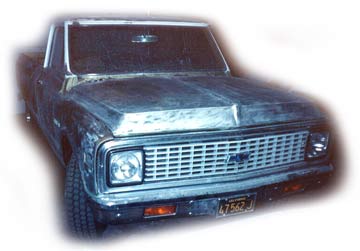 Okay, there is a story behind this truck. It begins here.... The truck went to a body shop in Sparks Nevada in 1991 that was owned by a "friend of the family". I traded a Cadillac for $3000 and a KHS Mountain Bike for $950 the balance of the work was to be paid in cash. It was actually painted at one time but the paint was not done well and even the guy who painted it didn't like the quality and when he was buffing it out he buffed through the paint on the hood. It was moved in the shop and a large dump truck came in for paint that would not fit in the spray booth. When they sprayed the dump truck yellow they got overspray all over the truck. The pickup had to be sanded down again. Years went by and my friends didn't believe I even had a truck. I was moving around and didn't have a place to store it so I let it slide. I called from time to time asking how the progress was coming and excuse after excuse was given. Then one day I called and the phone had been disconnected................... |