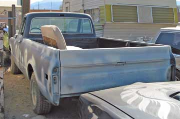 Ron Hilbert's 1971 Chevy C-10 Pickup Truck ProjectA week later my wife and I went up to Nevada to find the body shop completely empty and although there were some cars in the yard my truck was nowhere to be found. We talked to the landlord who happened to be next door collecting rent. He said that the body shop owner had declared bankruptcy and the IRS had an agent following him to find any assets he had as many of the cars were missing. The body shop owner next door said he had seen a pickup that was painted and sold; that the body shop owner had put fake mechanic leans on several vehicles so he could get title and sell them. My heart dropped as the thought of my pickup was gone forever. Next we went to the Federal Court and looked over the bankruptcy filing and got the attorney's name and phone number who did the filing. I called the attorney's office and he said he would not give me any information but he would notify the shop owner that I called. Next we headed to the DMV to see if any 1971 pickup trucks with my VIN number had title transferred ownership. On the way to the DMV office my cell phone rang and "the friend of the family" was on the line. You can only imagine the conversation that went on. Stories of what happened how everybody was out to get him and so on..... He assured me that he still had the truck and everyone was spreading lies about him. In the conversation he refused to show me where the truck was because of people who were following him, but I got a few clues. My wife and I found the truck looking over a fence a couple blocks from the old body shop in the back of a nursery along with some other cars tucked tightly together... The truck was lost and then it was found...