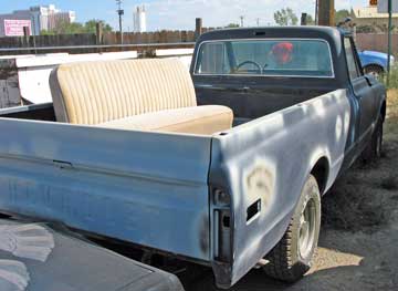 Ron Hilbert's 1971 Chevy C-10 Pickup Truck ProjectA week later my wife and I went up to Nevada to find the body shop completely empty and although there were some cars in the yard my truck was nowhere to be found. We talked to the landlord who happened to be next door collecting rent. He said that the body shop owner had declared bankruptcy and the IRS had an agent following him to find any assets he had as many of the cars were missing. The body shop owner next door said he had seen a pickup that was painted and sold; that the body shop owner had put fake mechanic leans on several vehicles so he could get title and sell them. My heart dropped as the thought of my pickup was gone forever. Next we went to the Federal Court and looked over the bankruptcy filing and got the attorney's name and phone number who did the filing. I called the attorney's office and he said he would not give me any information but he would notify the shop owner that I called. Next we headed to the DMV to see if any 1971 pickup trucks with my VIN number had title transferred ownership. On the way to the DMV office my cell phone rang and "the friend of the family" was on the line. You can only imagine the conversation that went on. Stories of what happened how everybody was out to get him and so on..... He assured me that he still had the truck and everyone was spreading lies about him. In the conversation he refused to show me where the truck was because of people who were following him, but I got a few clues. My wife and I found the truck looking over a fence a couple blocks from the old body shop in the back of a nursery along with some other cars tucked tightly together... The truck was lost and then it was found...
