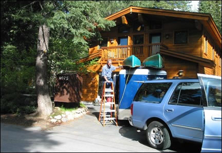 Loading the canoes and gear at Joe and Peggy Nicholas's Home in Lake Tahoe.