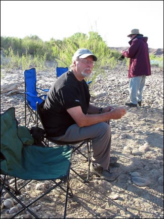 Ron after breakfast.Joe and Peggy were irritated by a kangaroo mousescratching at their tent during the night...