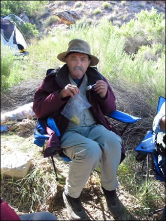 Joe eating out of the plastic bag....