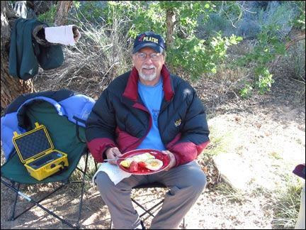 Ron eating his "Camp Scramble" with an english mufffin.