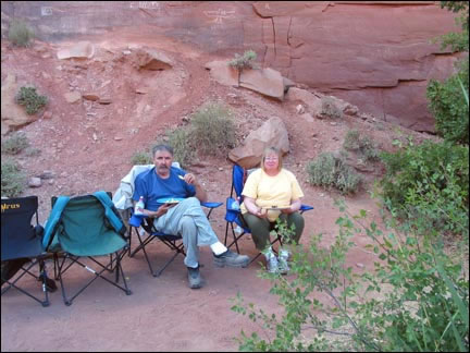 Joe and Peggy resting after a day of paddling....